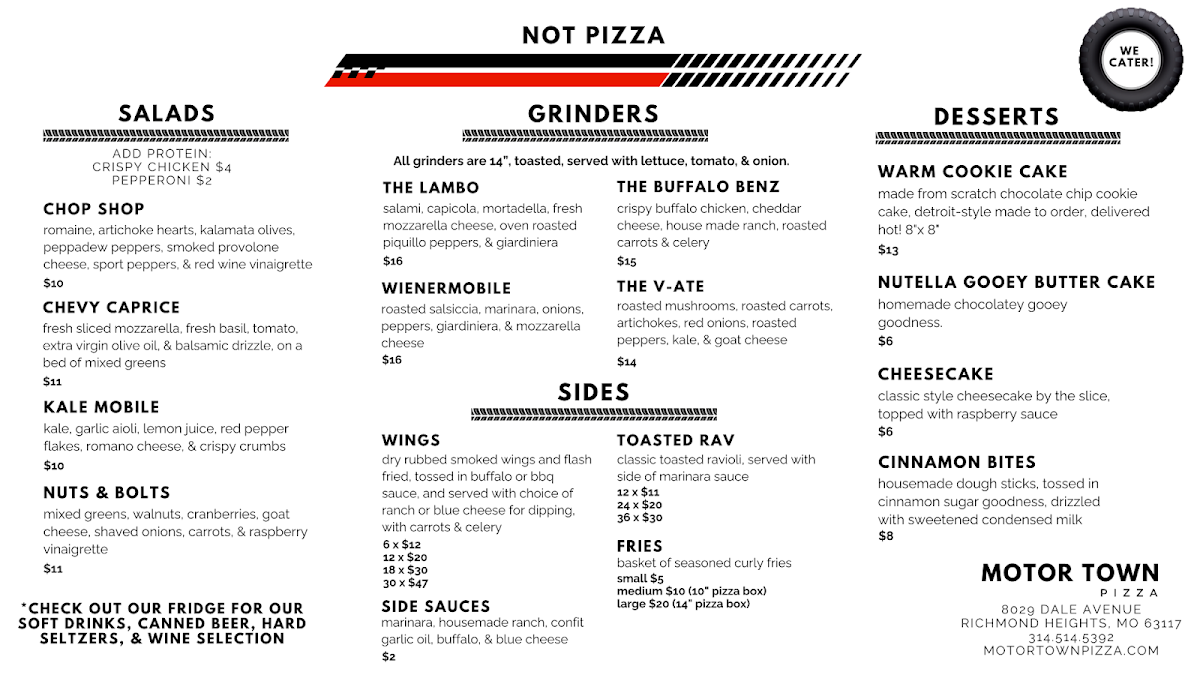 Welcome to Motor Town Pizza, where culinary excellence meets a friendly atmosphere in Richmond Heights, MO. Located at 8029 Dale Ave, this eatery boasts a menu that tantalizes the taste buds and captures the essence of pizza perfection.